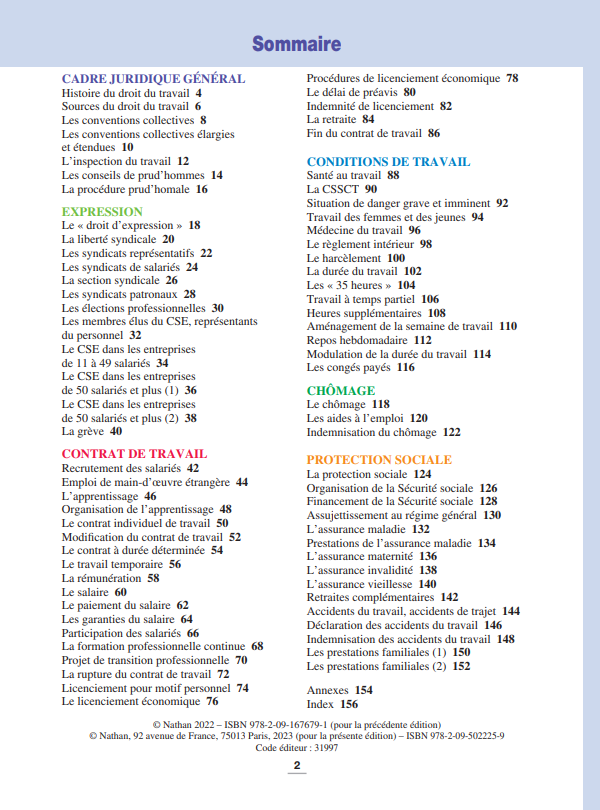 Mis à jour tous les ans en fonction de l'actualité, il comprend les dernières modifications en matière de droit du travail :